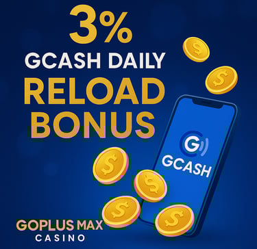 Don’t settle for just a reload — level it up! With the 3% GCASH Daily Reload Bonus, every deposit works harder for you, only at GOPLUS MAX CASINO!