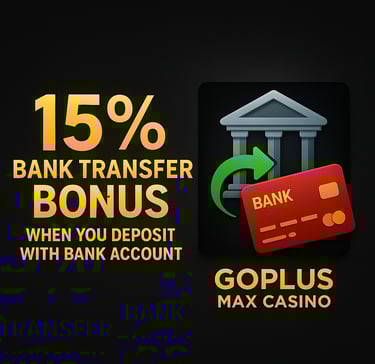 Deposit smart. Play strong. Win big. Make your bank transfer today at GOPLUS MAX CASINO and claim your instant 15% bonus to fuel your winning streak.